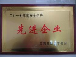 1月25日,公司榮獲寶雞市高新技術(shù)產(chǎn)業(yè)開發(fā)區(qū)“2017年度安全生產(chǎn)先進企業(yè)”稱號;公司專職安全員張瑩同志喜獲高新區(qū)“2017年度安全生產(chǎn)目標考核先進個人”稱號。公司和張瑩同志自2012年以來,已連續(xù)6年獲得該項殊榮。