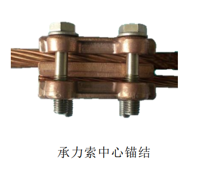 裝置組成: 接觸線中心錨結(jié)線夾、 承力索中心錨結(jié)線夾、 錨結(jié)繩。