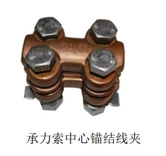 應(yīng)用范圍: 接觸線中心錨結(jié)線夾用于接觸線中心錨結(jié)繩與接觸線之間的連接固定; 承力索中心錨結(jié)線夾用于承力索與接觸線中心錨結(jié)繩、 承力索與承力索中心錨結(jié)繩之間的連接固定。