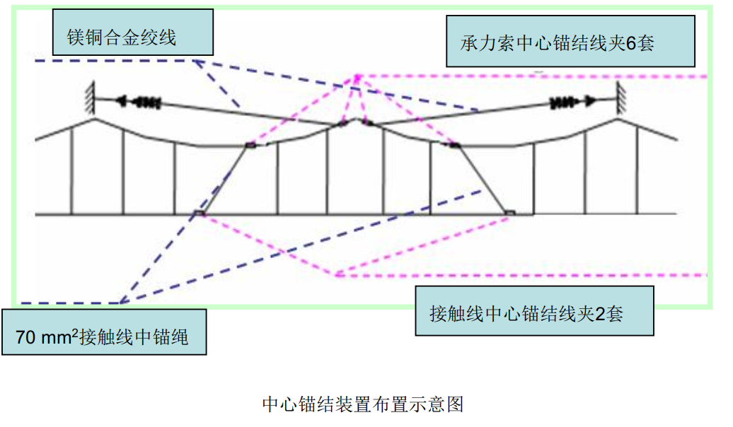 中心錨結(jié)裝置用于接觸懸掛系統(tǒng)中防止整個錨段向一側(cè)竄動或者接觸懸掛斷線時縮小事故范圍。
