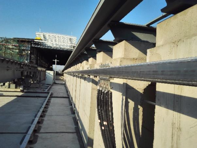 裝置組成: 鋼鋁復(fù)合接觸軌、中間接頭、電纜連接板、中心錨結(jié)、膨脹接頭、分段絕緣器、端部彎頭、過渡彎頭、絕緣支撐裝置。